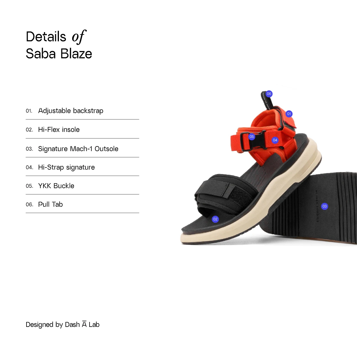 A classic two-strap sandals construction for flexibility in your stroll. Enhanced with Hi-Flex insole and signature Mach-1 sole for comfort & YKK buckle, and a detachable back strap for function. In a vibrant orange Blaze colorway made for your all-day-long stroll to walk further.